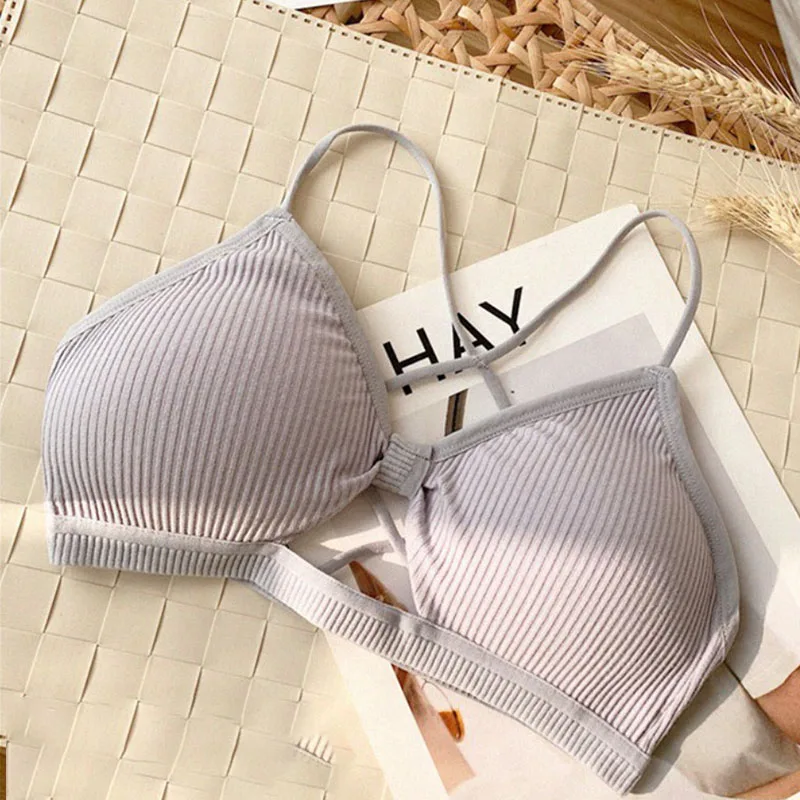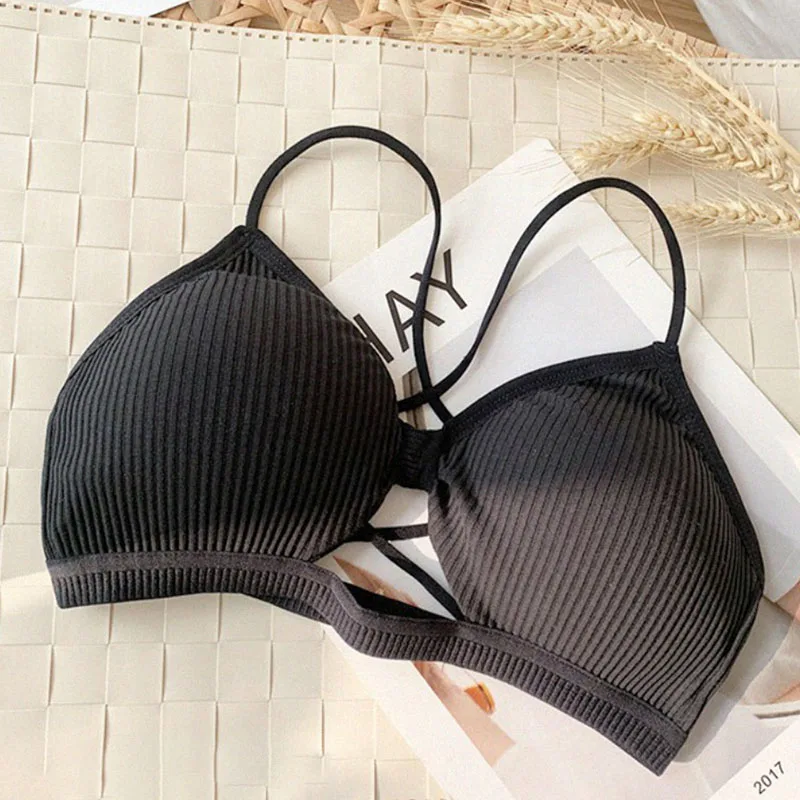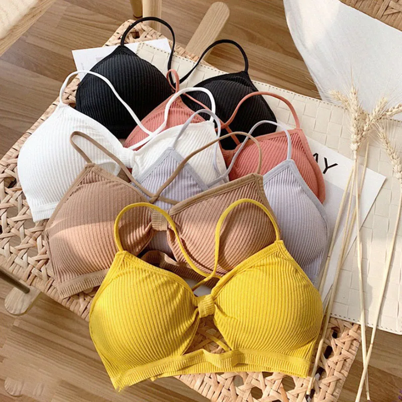 Special Price of Candy Color Women Girl Ribbed Knit Bra Bralette Cross Strappy Backless Underwear Hollow Knotted Fro