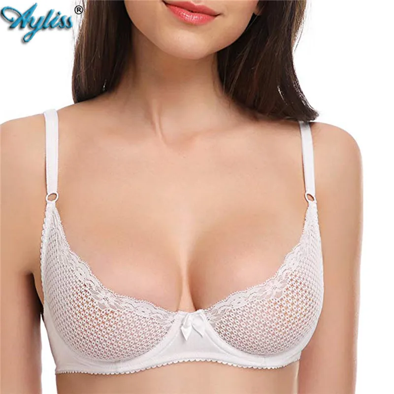 Ayliss Free Shipping 1pc Nude Women's Lace Bra Beauty Sheer Sexy Bra Non Padded Underwired Unlined Bra